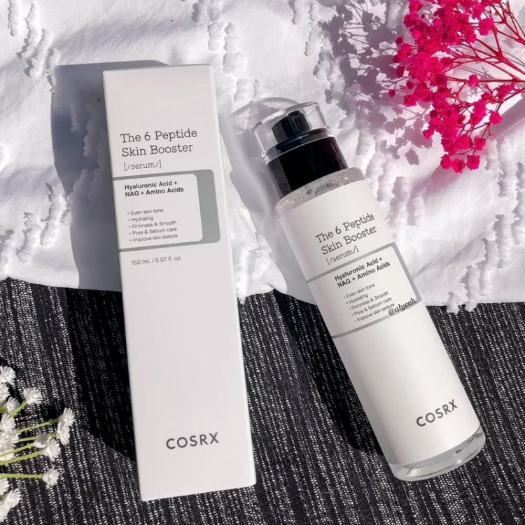 معرفی کلی و ترکیبات کلیدی سرم The 6 Peptide Skin Booster از برند کرهای COSRX یه محصول سبک و موثره که شامل شش نوع پپتید قویه و برای تقویت وضعیت کلی پوست طراحی شده—مثل کوچک کردن منافذ، کنترل چربی، سفت کردن، یکنواختی رنگ، آرامشبخشی، و روشنکنندگی.    شش پپتید فعال: • SH-Polypeptide-121: تحریک کلاژنسازی و پرکنندگی پوست • Copper Tripeptide-1: ترمیم و بازسازی بافت پوست • Dipeptide Diaminobutyroyl Benzylamide Diacetate: کنترل چربی و منافذ پوست • Oligopeptide-68: روشنکننده • Palmitoyl Tripeptide-8: تسکیندهنده و کاهش حساسیت • Acetyl Hexapeptide-8: صافکننده خطوط ریز (معروف به “بوتاکس در بطری”)   ⸻ خصوصیات برجسته و فواید • آبرسانی عمیق و سبک: با بافتی شبیه تونر، سریع جذب میشه و حس سنگینی نمیده.      • مناسب برای انواع پوست، حتی پوستهای حساس و مستعد آکنه.   • چندکاره و قوی: کاهش خطوط ریز، لیفت، یکدستسازی رنگ، تقویت سد دفاعی و کنترل چربی.    • بدون مواد حساسیتزا: فاقد الکل، پارابن، عطر و تستشده برای حساسیت.   • قابل استفاده با اکتیوهای دیگر: توصیه میشه همراه ویتامین C، رتینول، یا اسید هیالورونیک استفاده بشه تا اثرات بهتری داشته باشه.